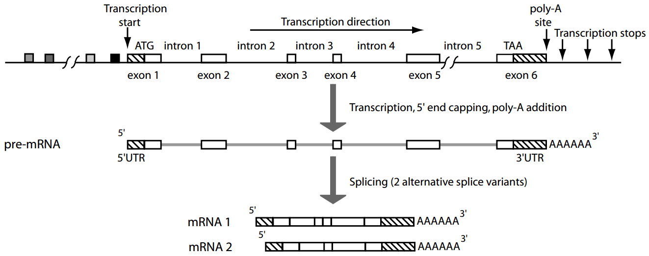 Furthermore, eukaryotes use alternative splicing to join different exons of the same gene to form multiple different proteins