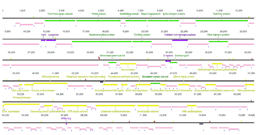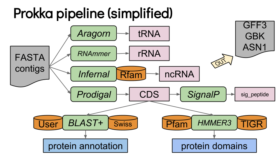 Annotates coding sequences, tRNAs, rRNAs, and regulatory regions.