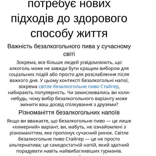 Ваші смакові відчуття заслуговують на найкраще! Чому б не спробувати світле безалкогольне пиво Стайгер та приєднатися до тренду здорового споживання?