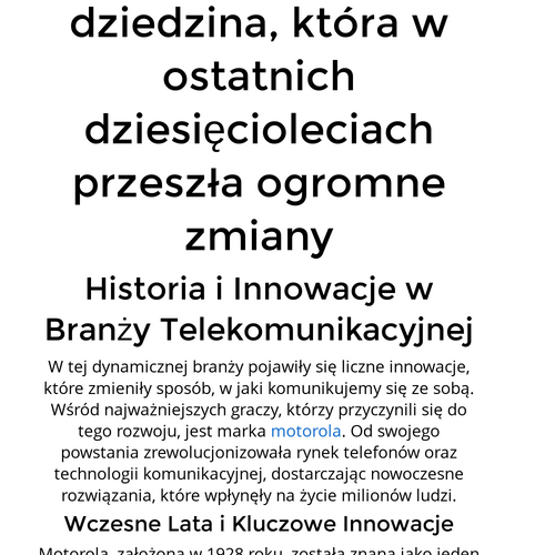W tej dynamicznej branży pojawiły się liczne innowacje, które zmieniły sposób, w jaki komunikujemy się ze sobą. Wśród najważniejszych graczy, którzy przyczynili się do tego rozwoju, jest marka motorola. Od swojego powstania zrewolucjonizowała rynek telefonów oraz technologii komunikacyjnej, dostarczając nowoczesne rozwiązania, które wpłynęły na życie milionów ludzi.
