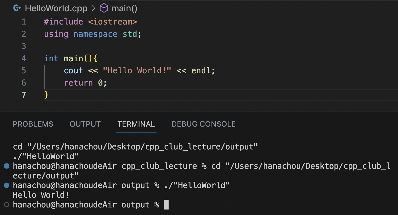 cout << "Hello World!" << endl; //註解見第九行