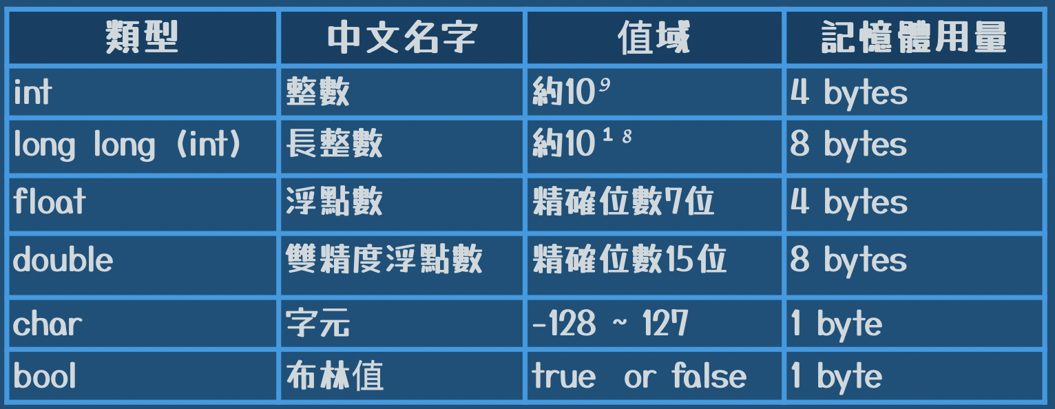 用法:型態 變數名稱;