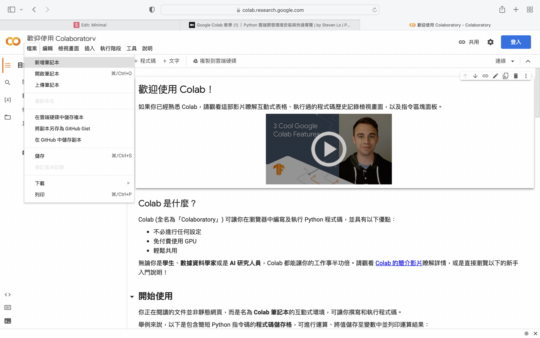 - 是一個雲端開發環境,可以讓你透過瀏覽器編寫及執行 Python 程式碼