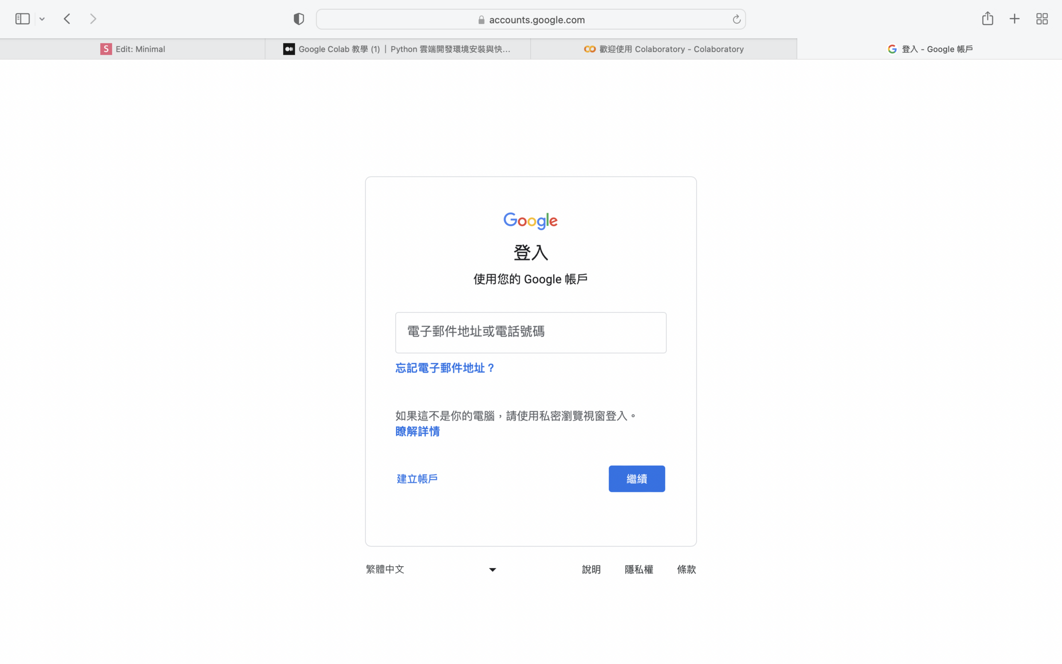 登入你的google帳戶