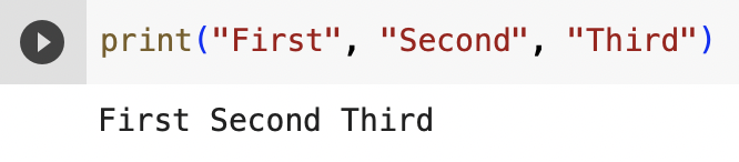print("First", "Second", "Third")如果要一次列印多個文字,可以用逗號分隔