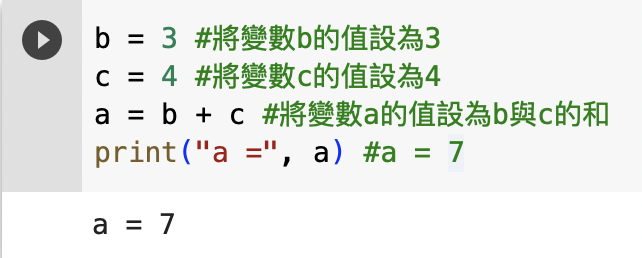 a = b + c #將變數a的值設為b與c的和