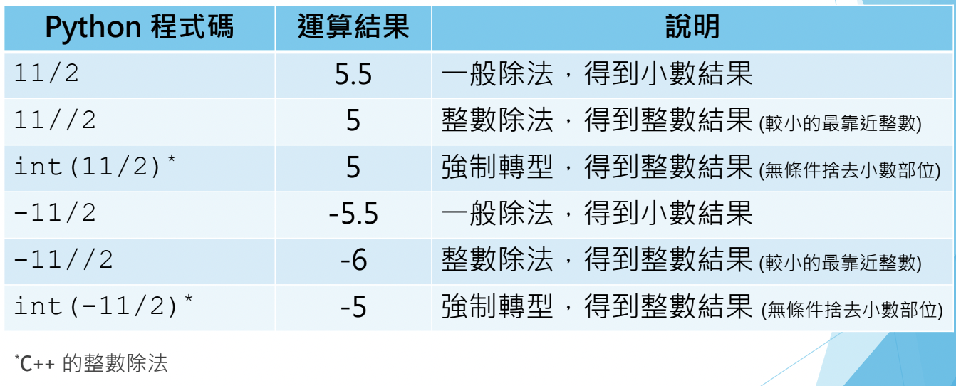比較特別的是 "%" 是取餘數