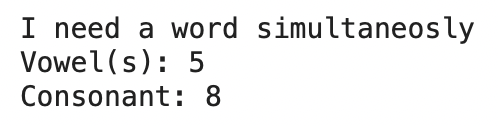 print("Vowel(s): " + str(v) + "\nConsonant: " + str(c))