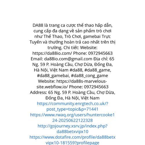 Website: https://da88s-marvelous-site.webflow.io/ DA88 là trang ca cược thể thao hấp dẫn, cung cấp đa dạng về sản phẩm trò chơi như Thể Thao, Trò Chơi, gamebai Trực Tuyến và thưởng hoàn trả cao nhất trên thị trường. Chi tiết: Website: https://da88io