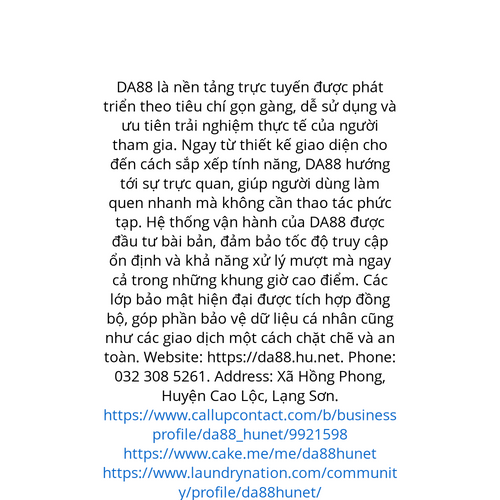Website: https://da88.hu.net. DA88 là nền tảng trực tuyến được phát triển theo tiêu chí gọn gàng, dễ sử dụng và ưu tiên trải nghiệm thực tế của người tham gia. Ngay từ thiết kế giao diện cho đến cách sắp xếp tính năng, DA88 hướng tới sự trực quan, gi