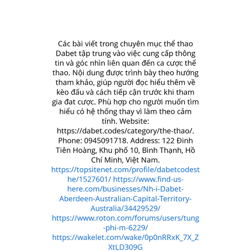 Website: https://dabet.codes/category/the-thao/. Các bài viết trong chuyên mục thể thao Dabet tập trung vào việc cung cấp thông tin và góc nhìn liên quan đến ca cược thể thao. Nội dung được trình bày theo hướng tham khảo, giúp người đọc hiểu thêm về