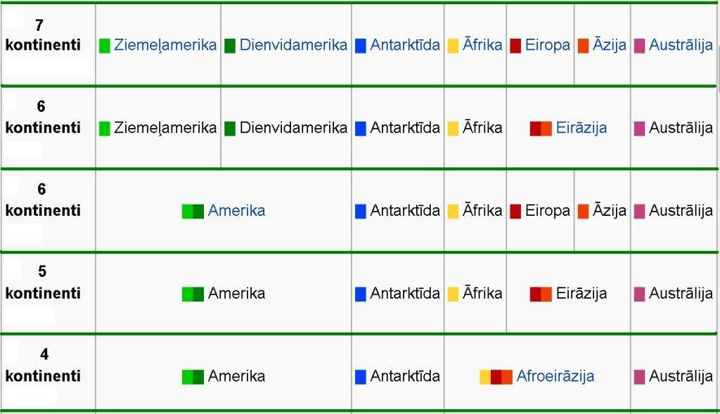 Eksistē arī citi kontinentu iedalījumu modeļi