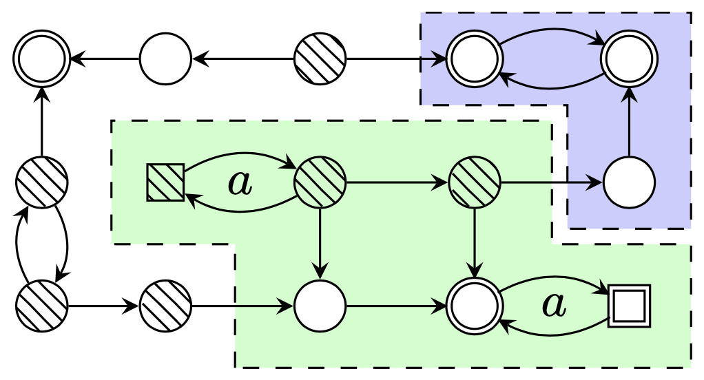 - Long-term behaviour of the graph corresponds to SCCs (strongly connected components), especially BSCCs.