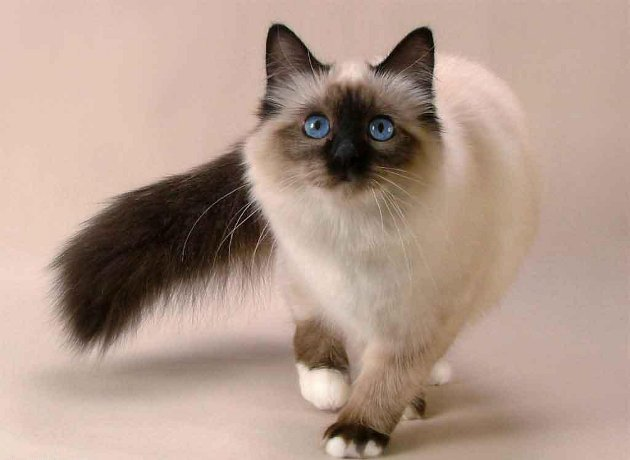 Ojos azules, malhumorados, Cola rizada, largos, pelaje corto.