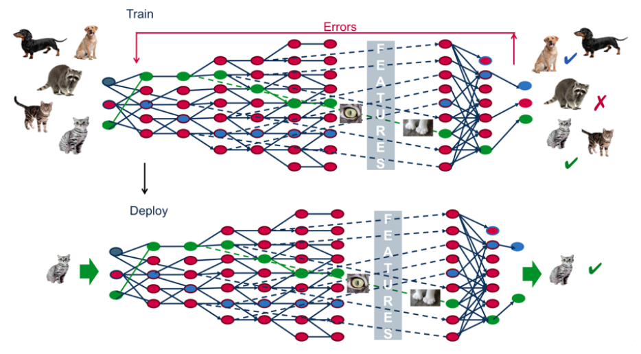 Learning at multiple levels, each hidden layer is responsible for recognizing different characteristics, and deliver them as input to the next layer.