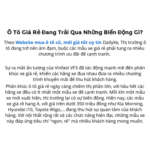 Theo Website mua ô tô cũ, mới giá tốt uy tín DailyXe, Thị trường ô tô đang trở nên ảm đạm, buộc các mẫu xe giá rẻ phải tung ra nhiều chương trình ưu đãi để cạnh tranh.