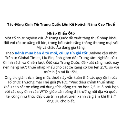 Tác Động Kinh Tế: Trung Quốc Lên Kế Hoạch Nâng Cao Thuế Nhập Khẩu Ôtô