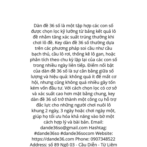 Website: https://dande36.com Dàn đề 36 số là một tập hợp các con số được chọn lọc kỹ lưỡng từ bảng kết quả lô đề nhằm tăng xác suất trúng thưởng khi chơi lô đề. Key dàn đề 36 số thường dựa trên các phương pháp soi cầu như cầu bạch thủ, cầu lô rơi, th