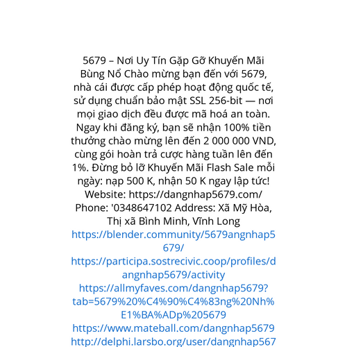 Website: https://dangnhap5679.com/ 5679 – Nơi Uy Tín Gặp Gỡ Khuyến Mãi Bùng Nổ Chào mừng bạn đến với 5679, nhà cái được cấp phép hoạt động quốc tế, sử dụng chuẩn bảo mật SSL 256-bit — nơi mọi giao dịch đều được mã hoá an toàn. Ngay khi đăng ký, bạn
