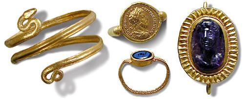 As jóias no antigo egípcio eram carregadas de misticismo e simbolismos. Figurativas, essas peças tinham formas de escaravelhos, que representavam o sol e a criação; olho do deus Horus, que protegia contra maus espíritos ou até mesmo de serpentes e escorpiões. Utilizavam muitas cores, que também eram carregadas de simbolismos.