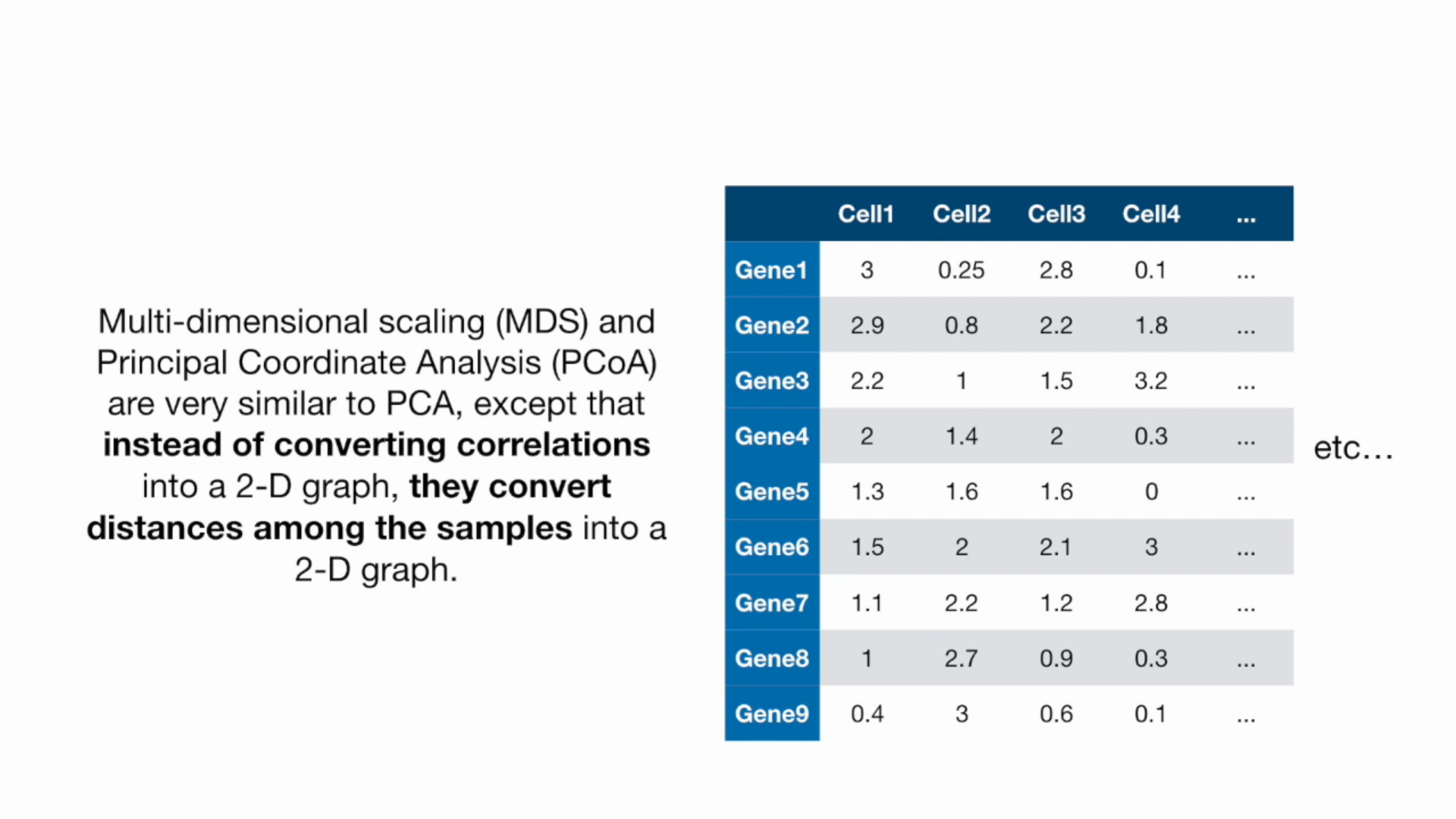 - MDS and PCoA: