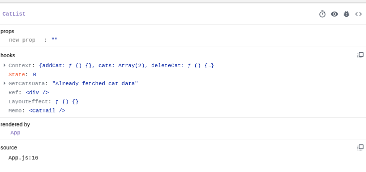 useDebugValue(cats.length === 0 ? 'Empty cat data' : 'Already fetched cat data');