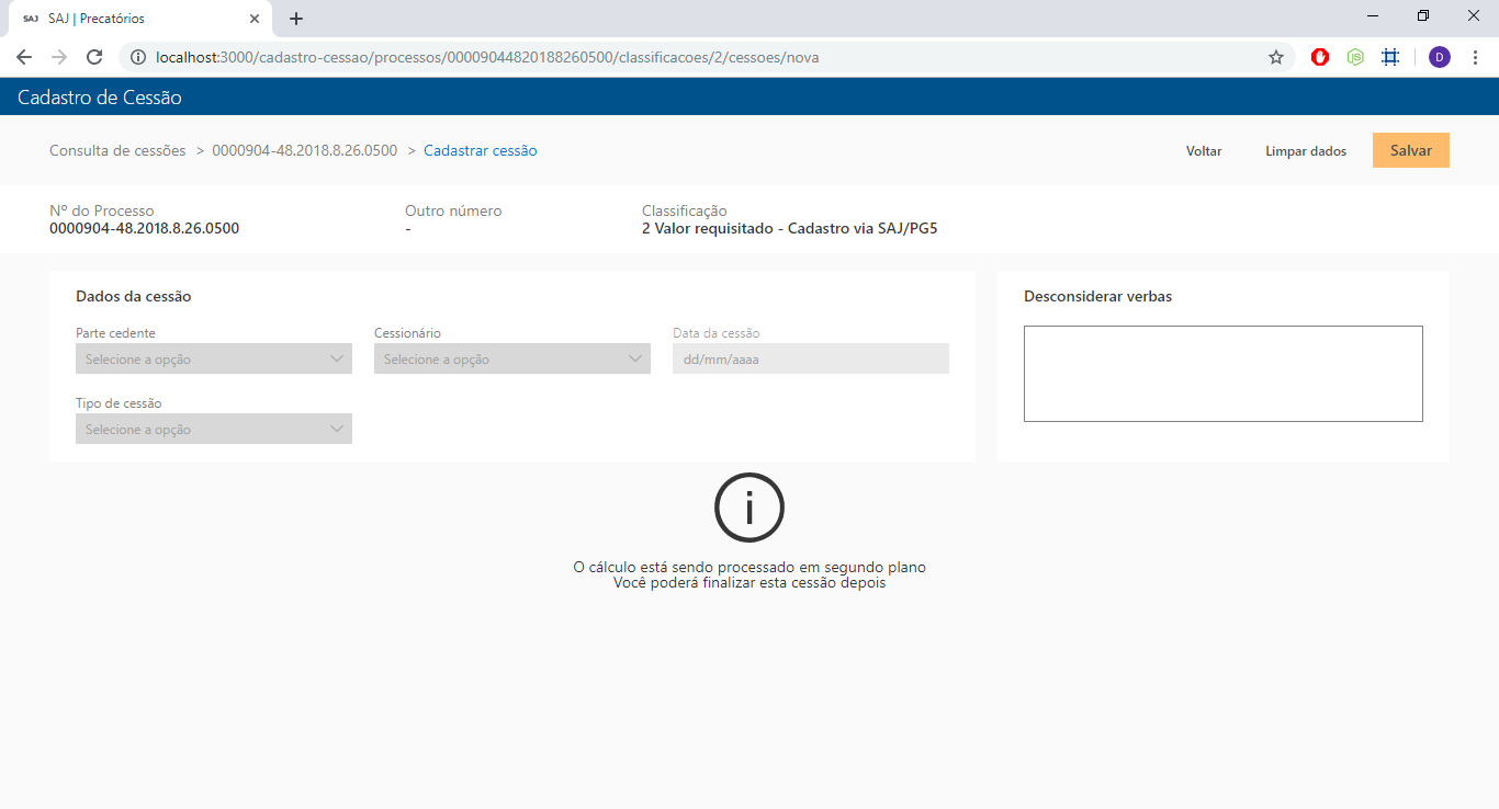 A tela de Cadastro de Cessão precisa dos valores de um cálculo do PG5, que foi exposto em uma fila do RabbitMQ e tratado por um endpoint .Net