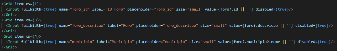 - Criar 3 divisões no componente Dados para melhor organizar os campos