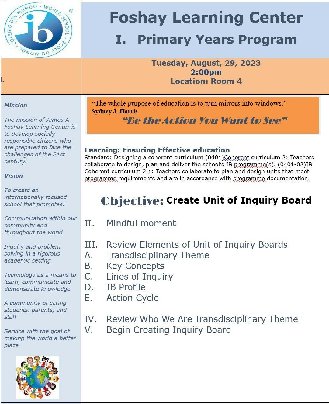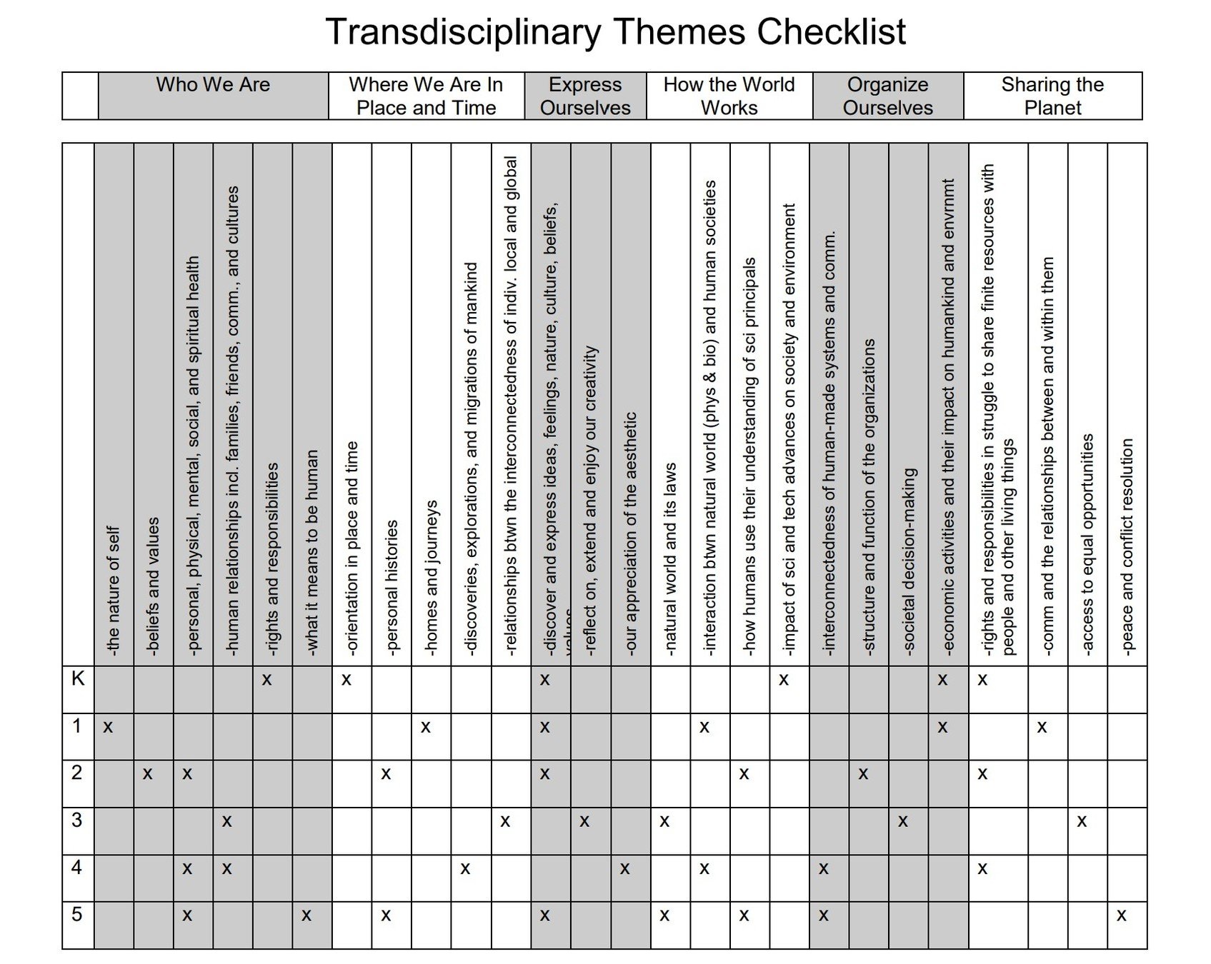 The most significant and distinctive feature of the IB Primary Years Programme are the six transdisciplinary themes
