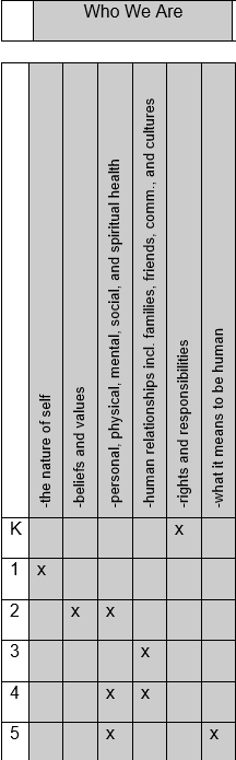 - 4: Personal, physical, mental, social and spiritual health and human relationships including families, friends, communities, and cultures
