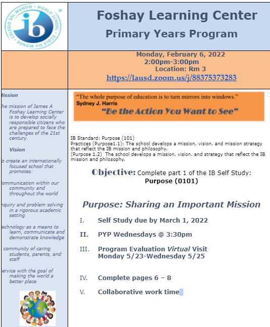 - Optional: Student lead video tour of the school (Introduction to the school with voice over or narration...10 minutes max)(classrooms, library, theater...)