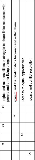 - K: Rights and responsibilities in the struggle to share finite resources with people and other living things