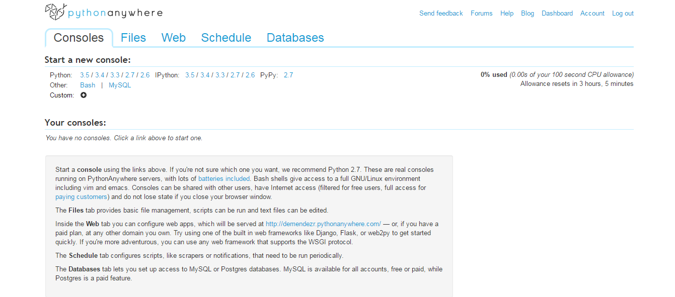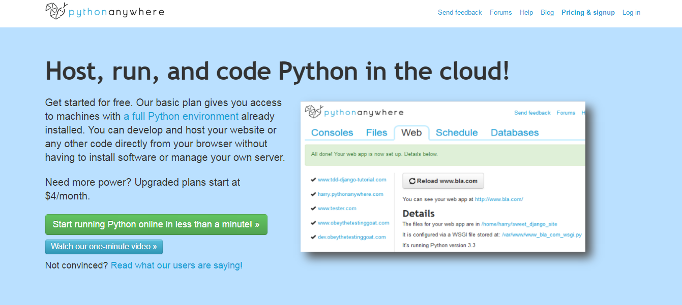 - Cloud Hosting: PythonAnywhere (https://www.pythonanywhere.com/)