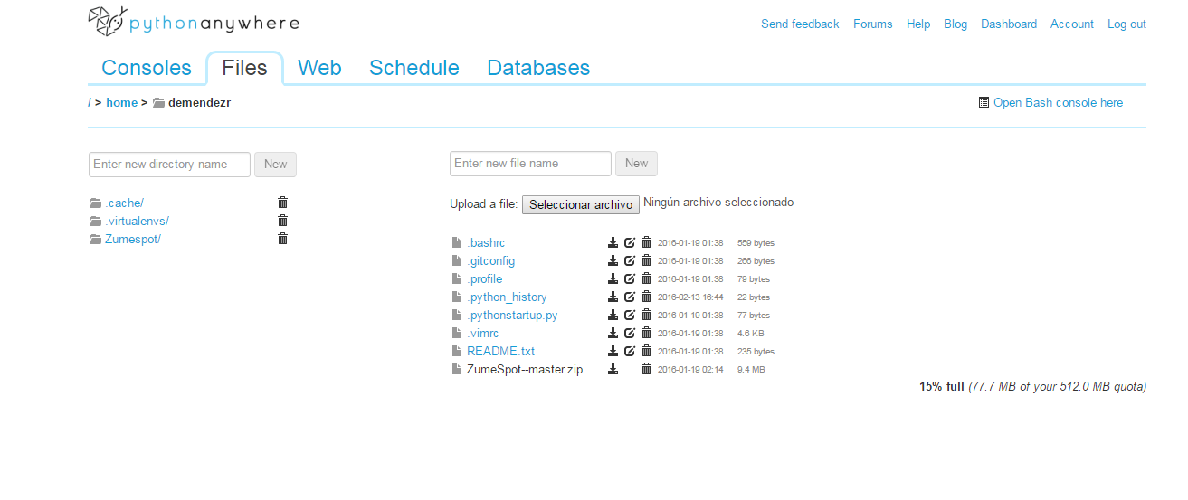 - Se debe ir al tab Console y dar click en Bash para abrir una consola
