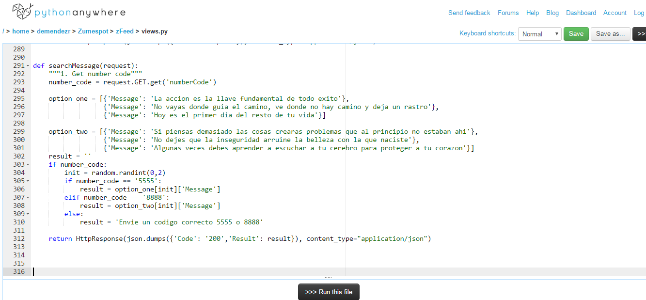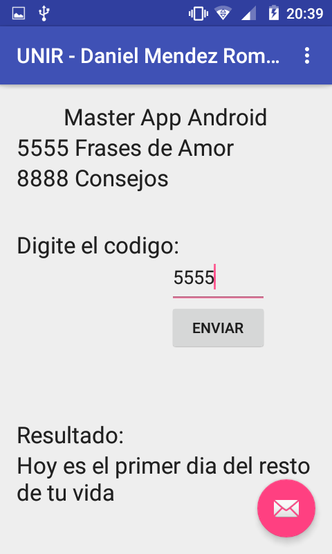 El servicio es un servicio REST que admite una cadena de texto, en este caso un número 5555 o 8888 y devuelve una frase. Para el número 5555 devuelve frases de amor aleatorias, y para el número 8888 devuelve consejos aleatorios también. La idea de este servicio es simular de alguna forma el proceso de los mensajes de texto de las operadores de telefonía.