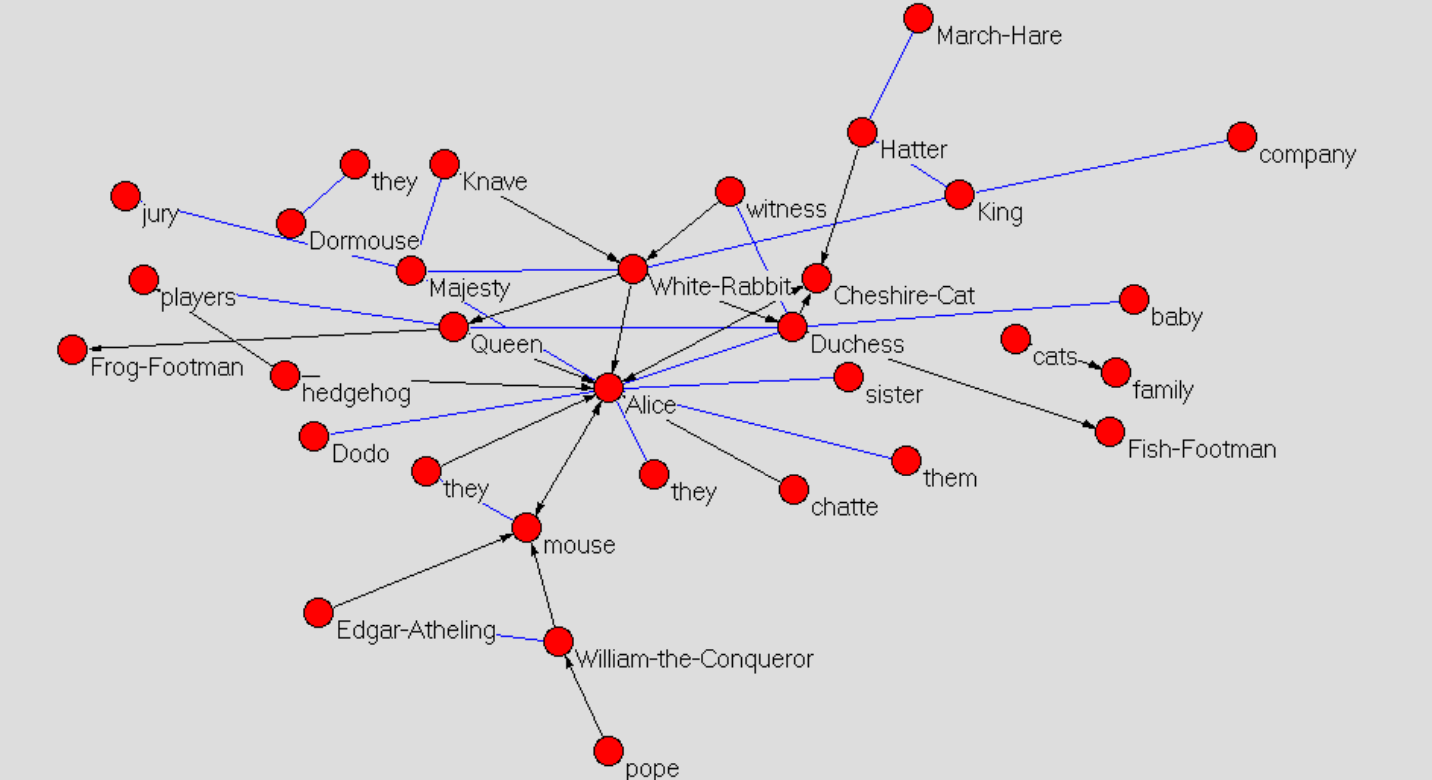 - Agarwal A., Kotalwar A., Rambow O. (2013), Automatic Extraction of Social Networks from Literary Text: A Case Study on Alice in Wonderland, Proceedings of IJCNLP 2013, Nagoya, Japan.