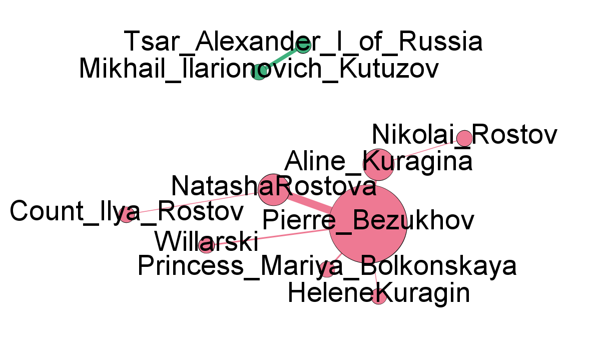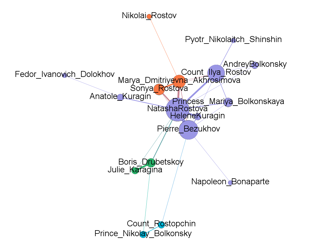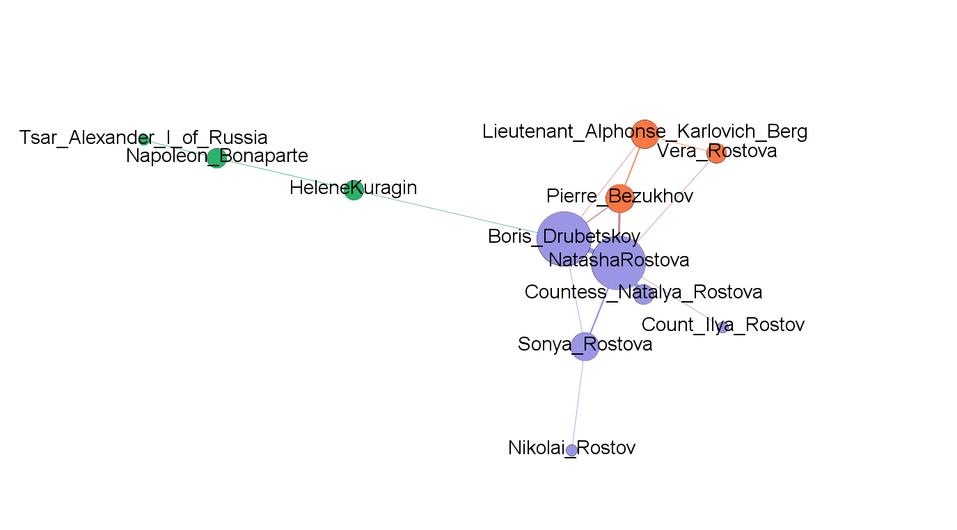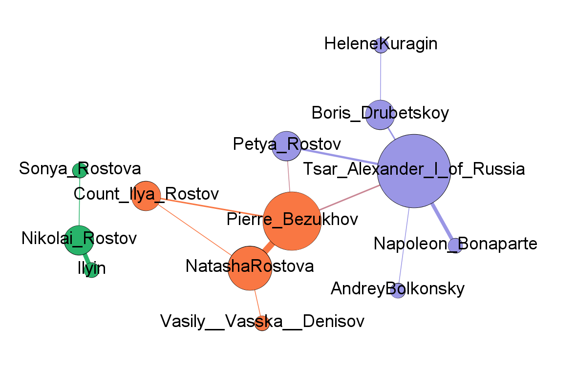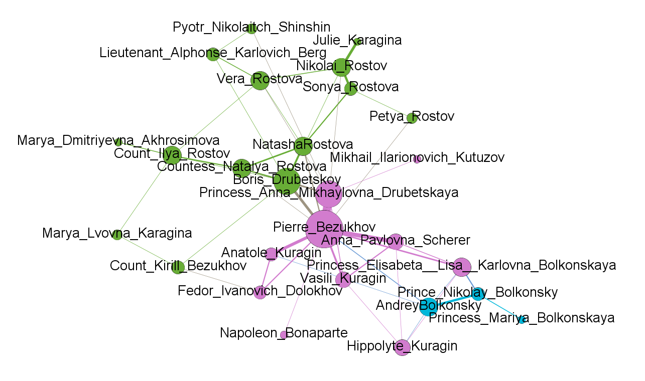 - Толщина ребра: вес связи (=сколько раз в этой части герои оказывались под одним предикатом)