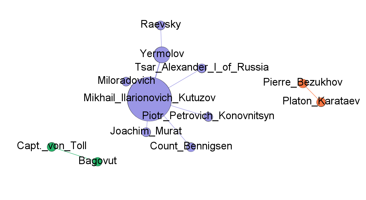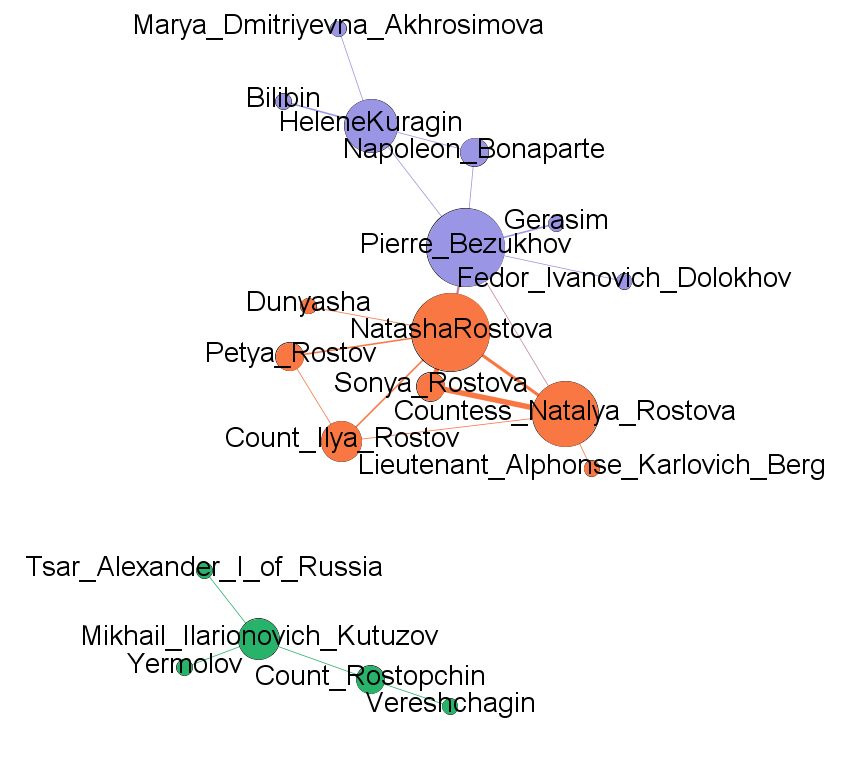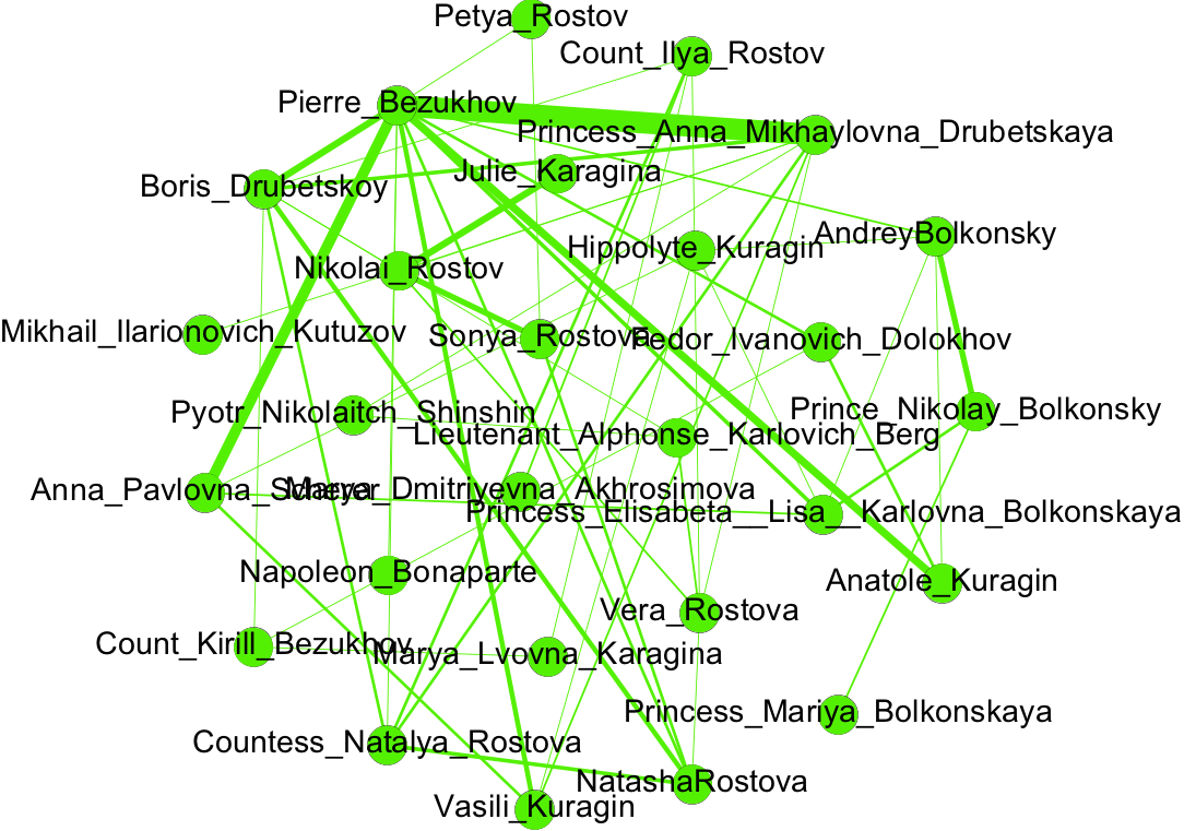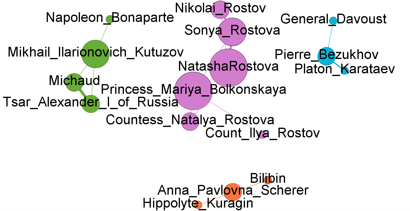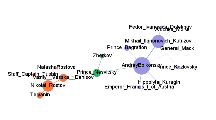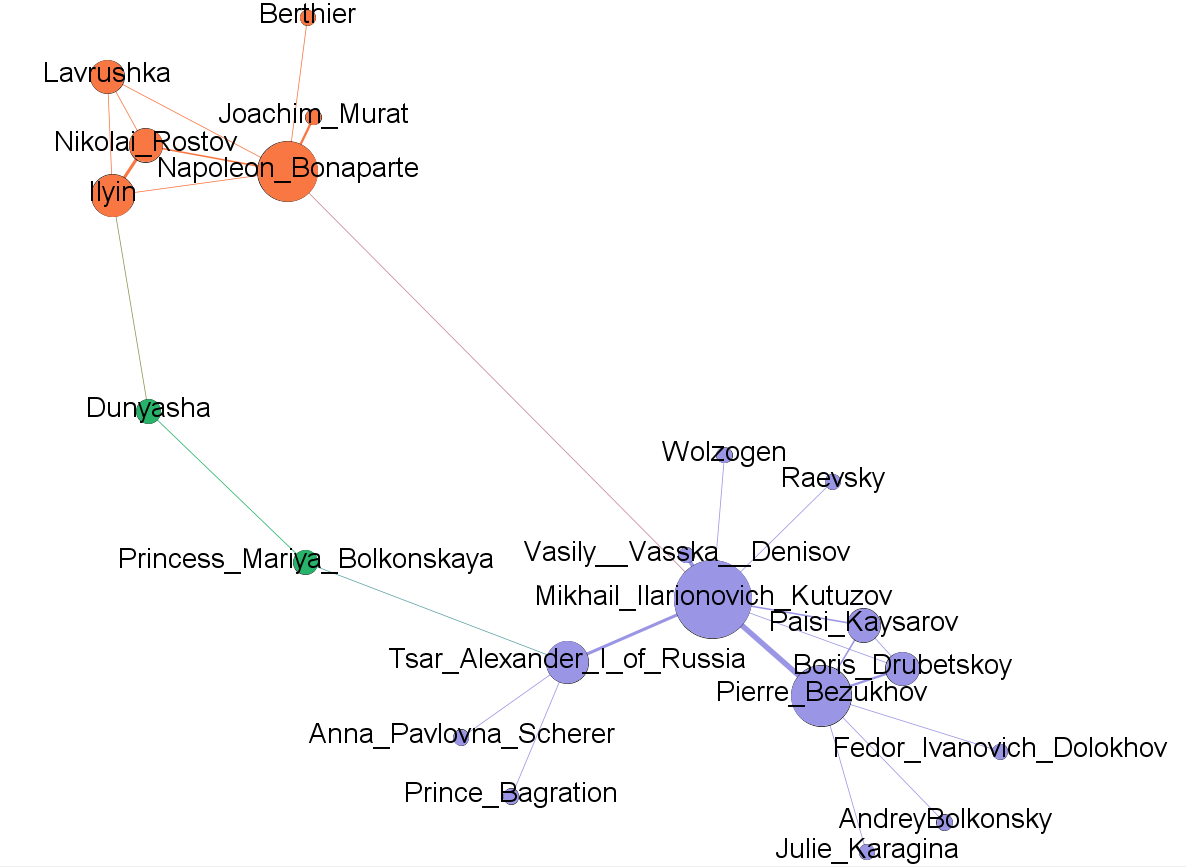 - Толщина ребра: вес связи (=сколько раз в этой части герои оказывались под одним предикатом)