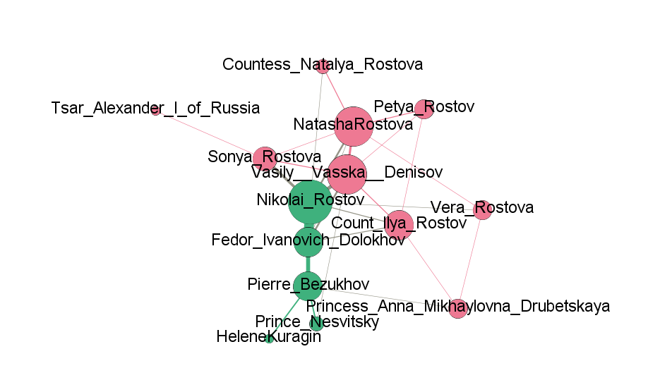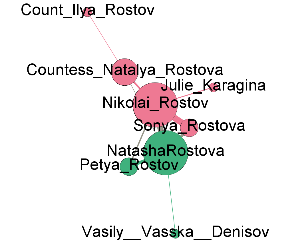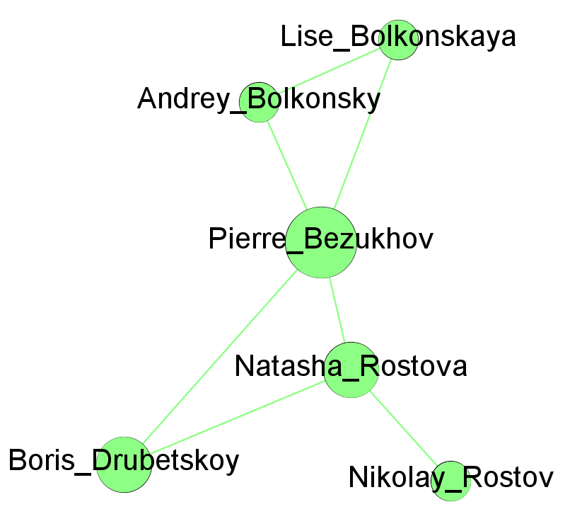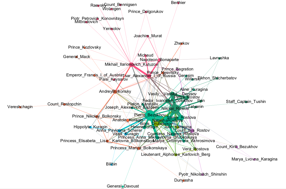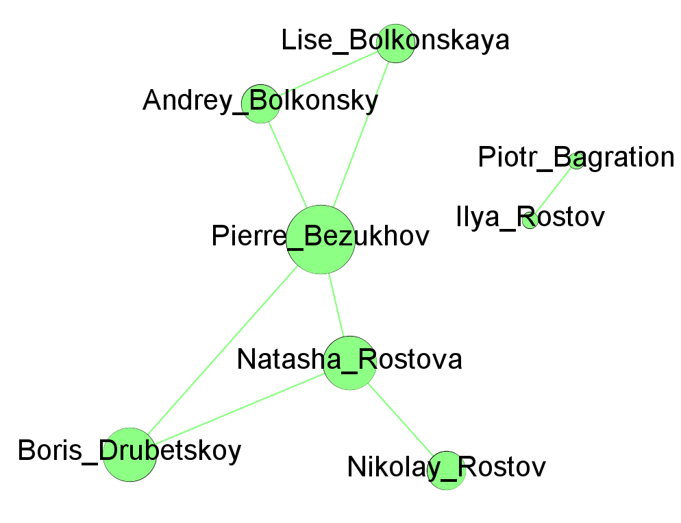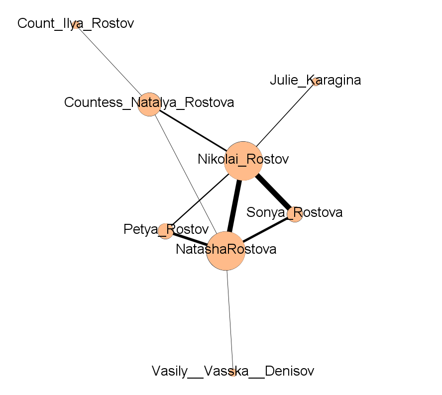 - Толщина ребра: вес связи (=сколько раз в этой части герои оказывались под одним предикатом)
