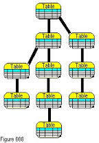 A data structure in which collections of tables are logically associated with each other by shared fields.