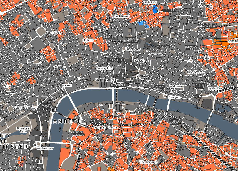 The fact that features have attributes as well geometry in a GIS Application opens up many possibilities. For example we can use the attribute values to tell the GIS what colours and style to use when drawing features. The process of setting colours and drawing styles is often referred to as setting feature symbology.
