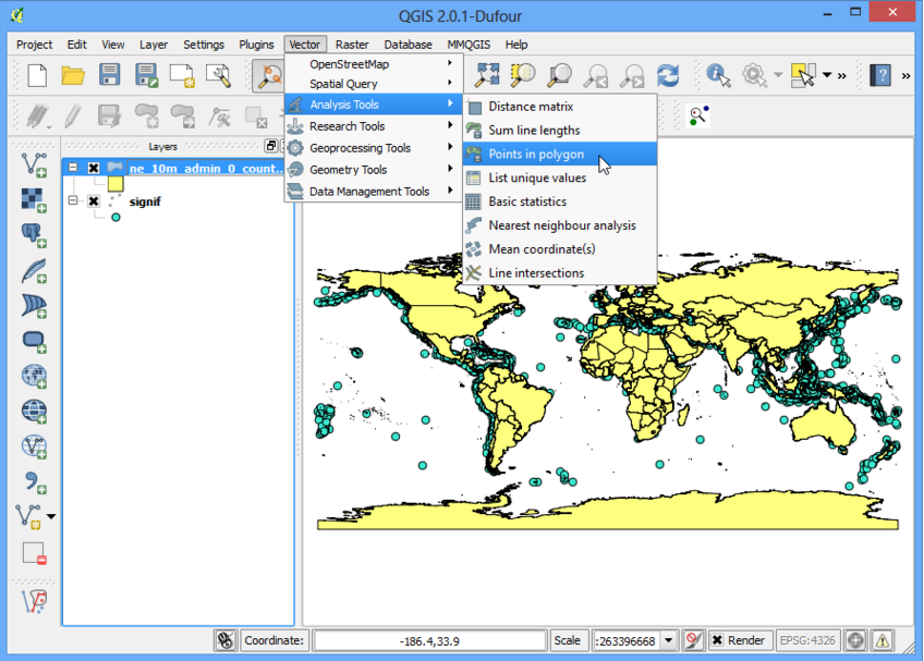 The power of GIS lies in analysing multiple data sources together. Often the answer you are seeking lies in many different layers and you need to do some analysis to extract and compile this information. One such type of analysis is Points-in-Polygon. When you have a polygon layer and a point layer - and want to know how many or which of the points fall within the bounds of each polygon, you can use this method of analysis.