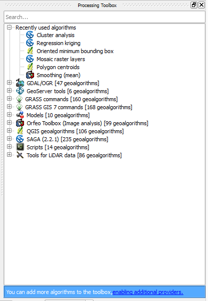 The toolbox contains all the available algorithms, divided into so-called “Providers”.