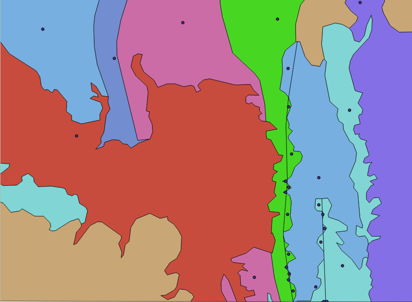 Many GIS applications provide tools for topological editing. For example in QGIS you can enable topological editing to improve editing and maintaining common boundaries in polygon layers. A GIS such as QGIS ‘detects’ a shared boundary in a polygon map so you only have to move the edge vertex of one polygon boundary and QGIS will ensure the updating of the other polygon boundaries as shown in