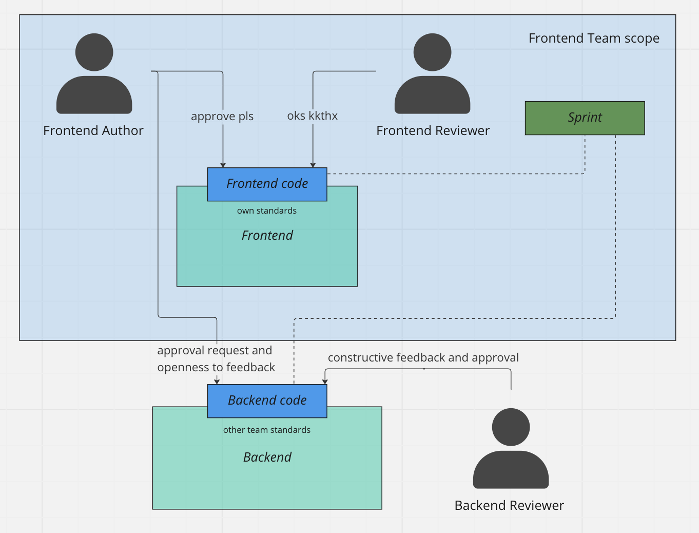 - Developed by a Frontend team in a Backend team codebase