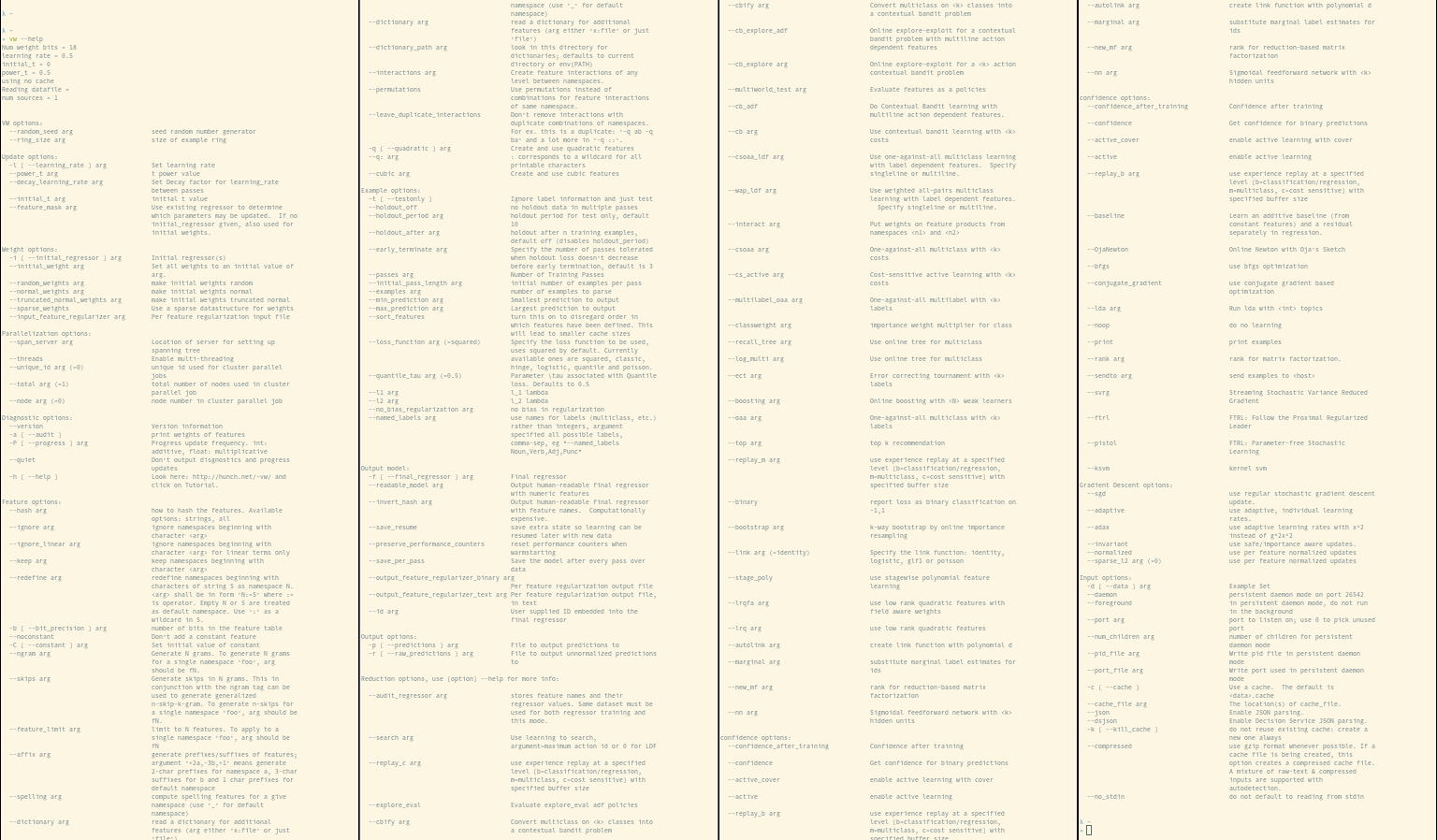 https://github.com/JohnLangford/vowpal_wabbit/wiki
