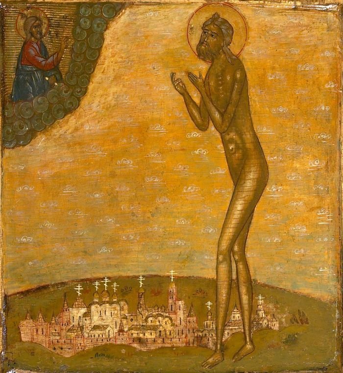 The nude 16th century St Basil the Blessed Fool in Moscow and