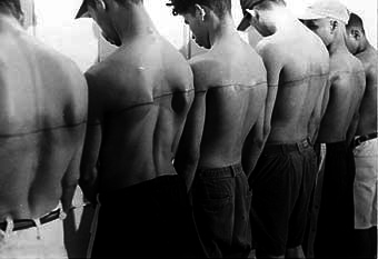 Santiago Sierra, 250 cm Line Tattooed on 6 Paid People, 1991