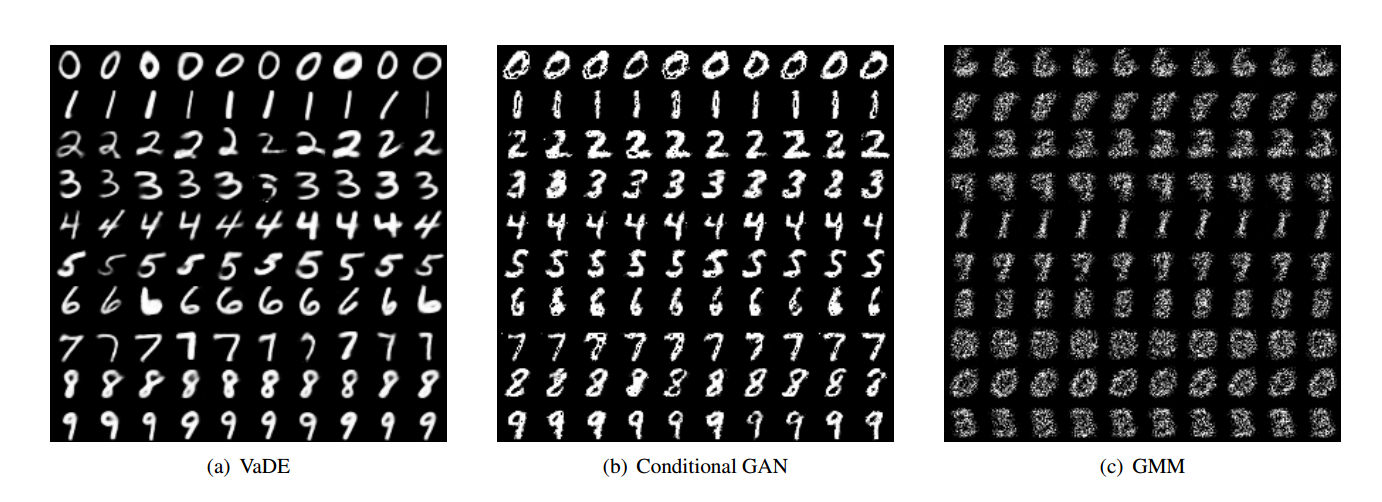 VaDE is capable of learning both cluster and feature embedding abstractions that rival traditional supervised learning techniques.