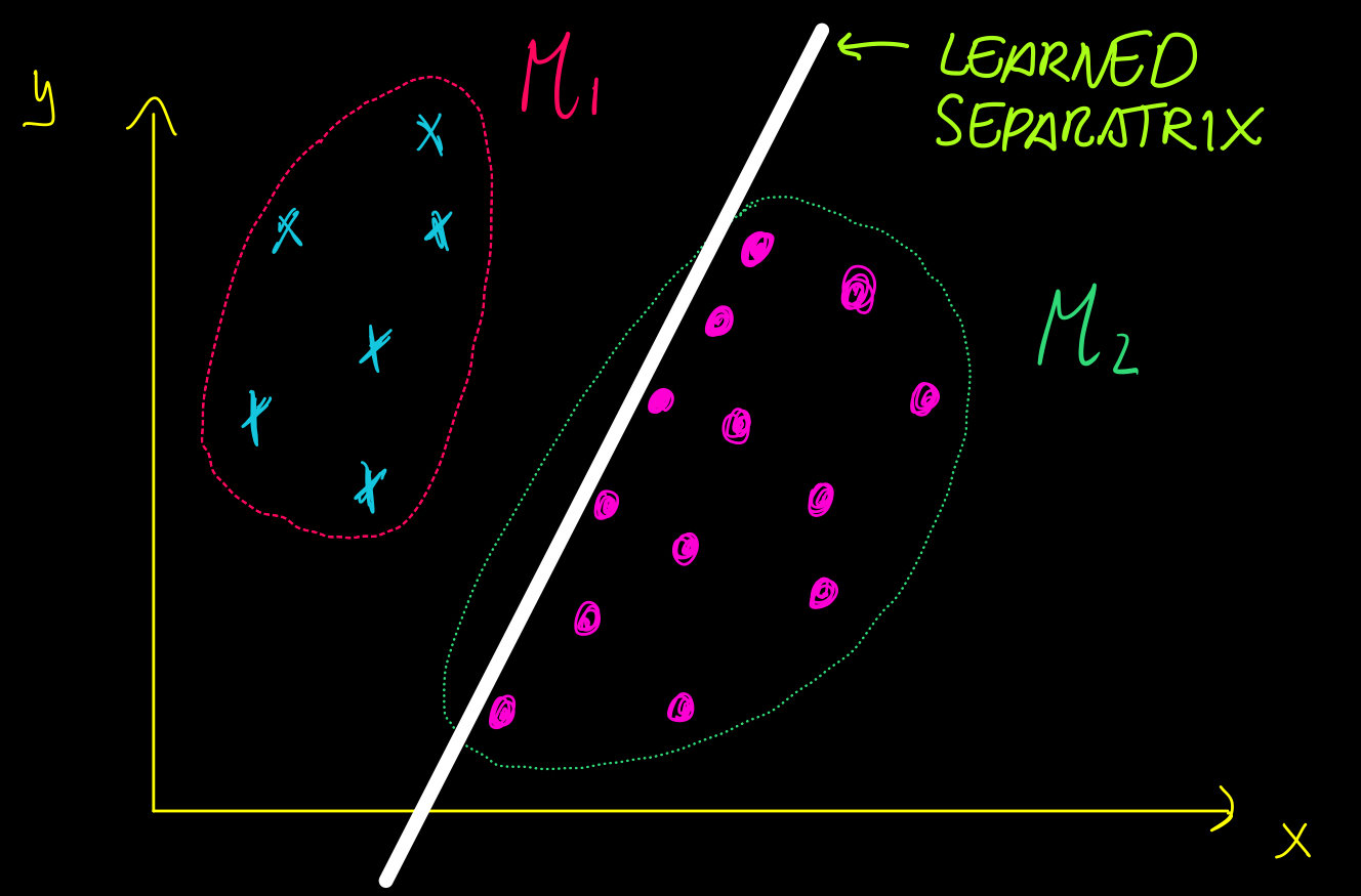 Given a "sufficiently large" set of \(N\) points in \(\mathcal{M}\subset\mathbb{R}^k\) that belong to \(C\) classes, we want to learn a function \(F\) assigning all the points of \(\mathcal{M}\) to the correct class.